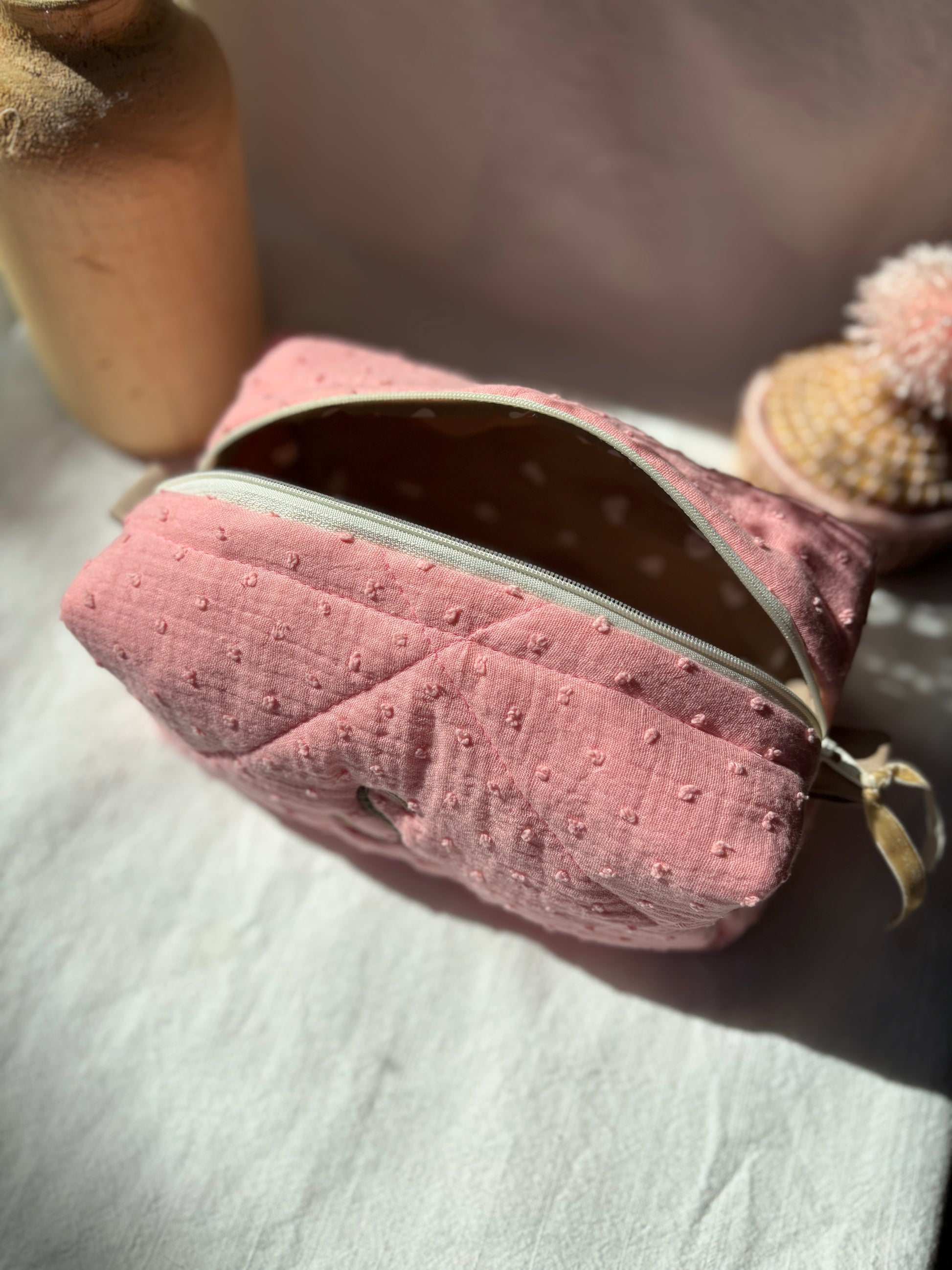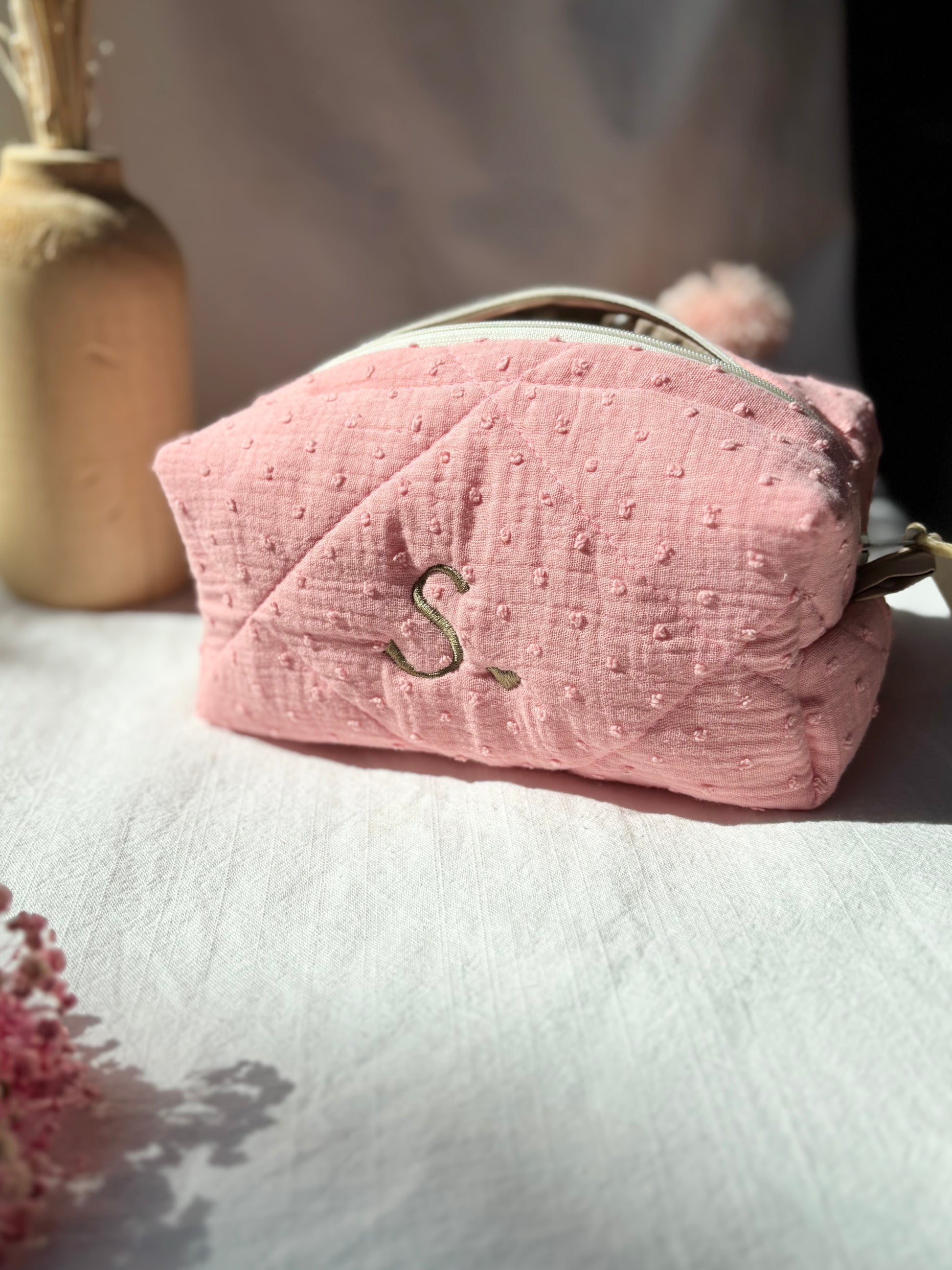Cubotto in mussola di cotone pluma, personalizzato con iniziale S, realizzabile con qualsiasi iniziale o nome.