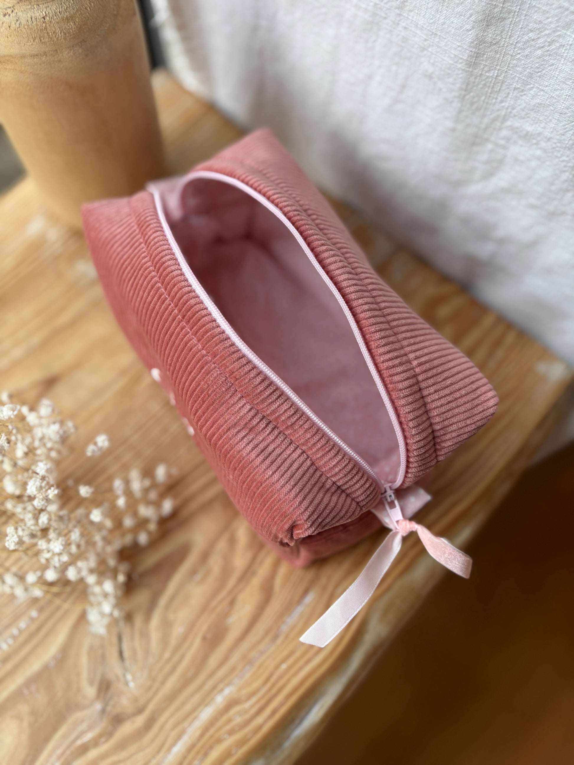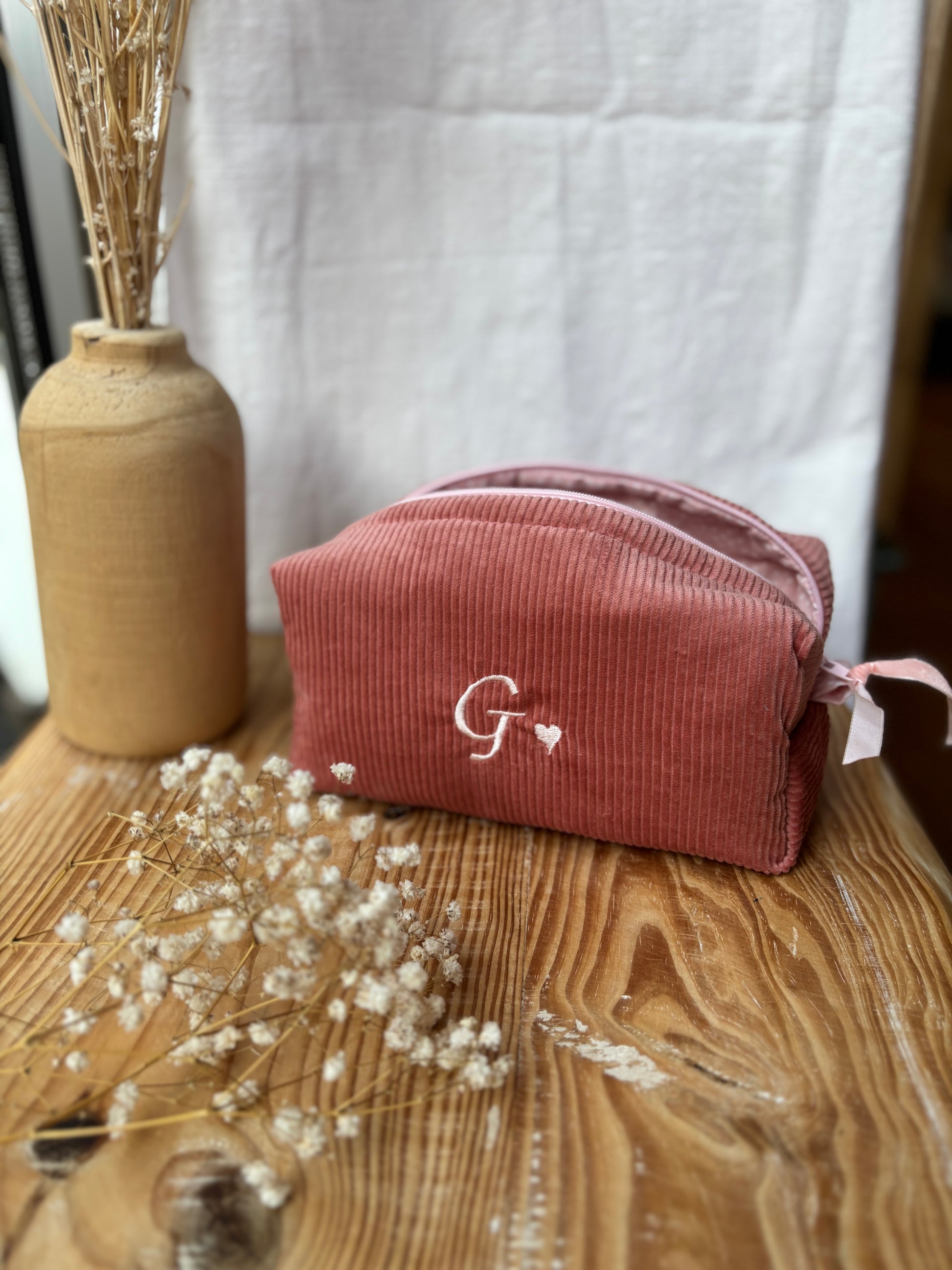 Cubotto in velluto a coste rosa antico, personalizzato con iniziale G, realizzabile con qualsiasi lettera o nome.