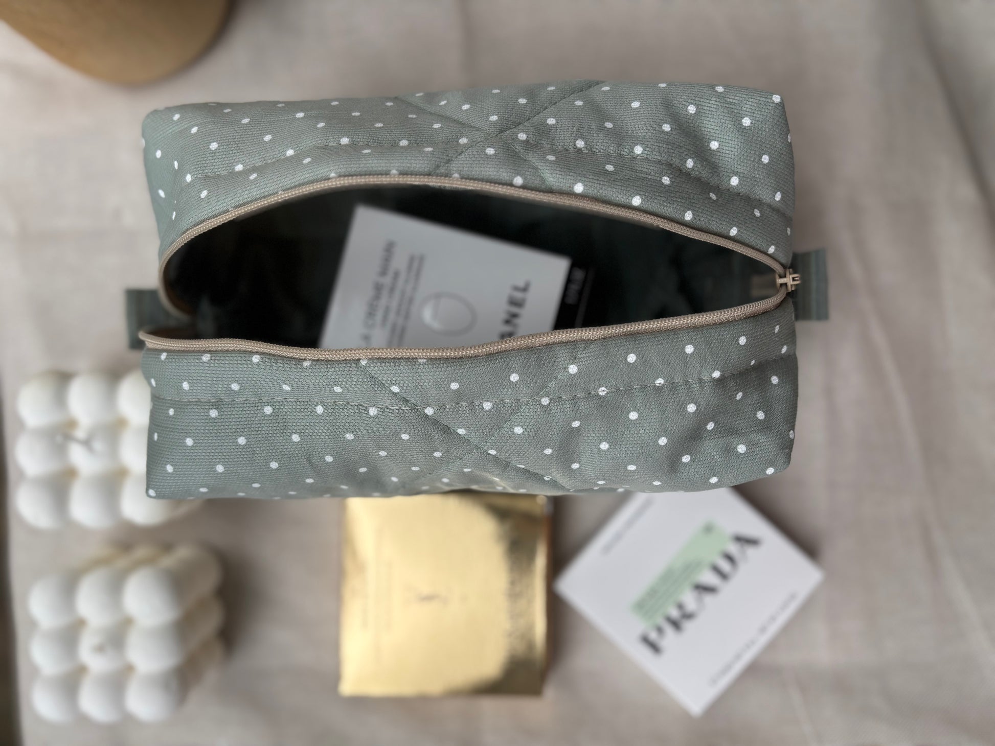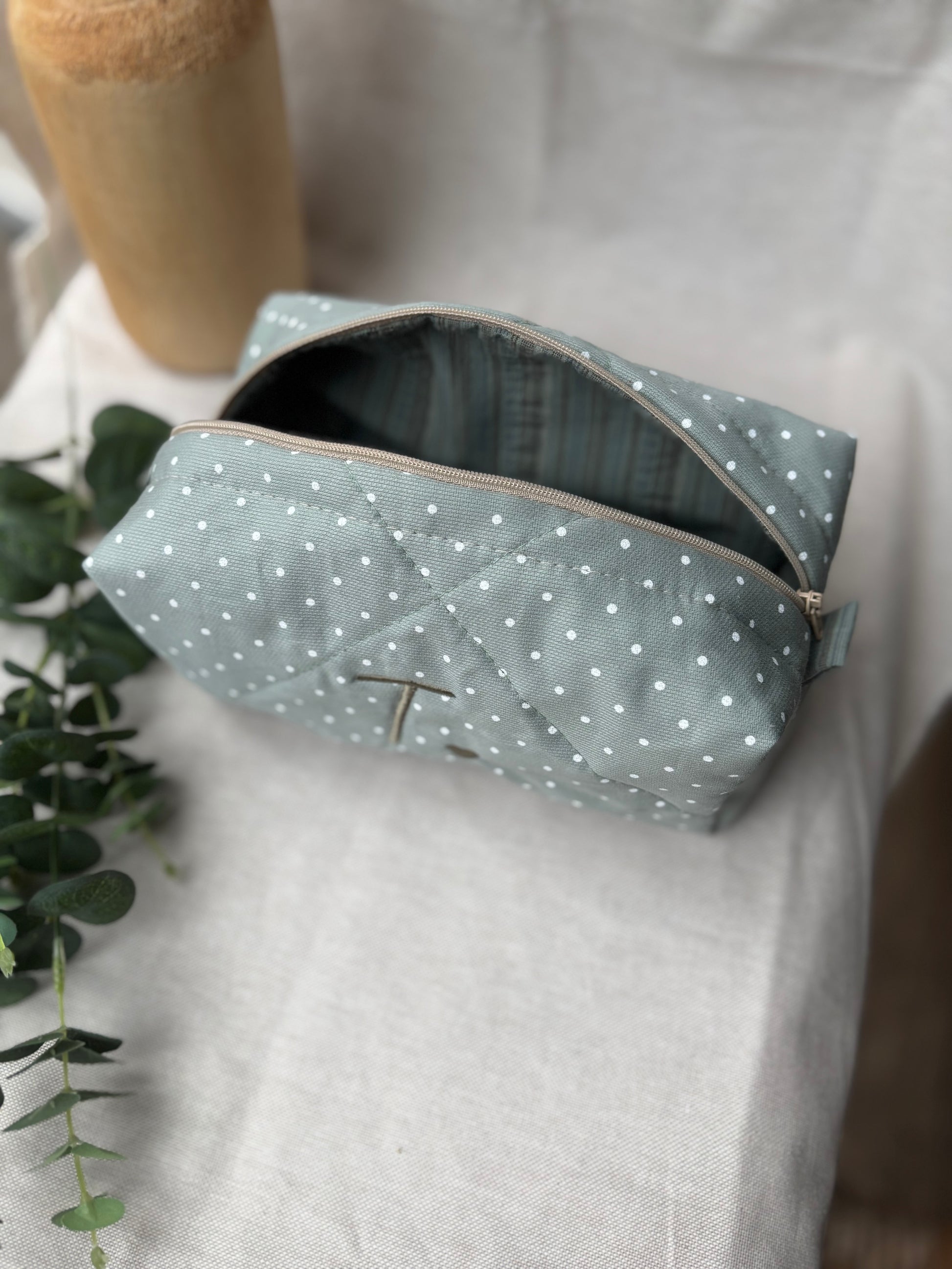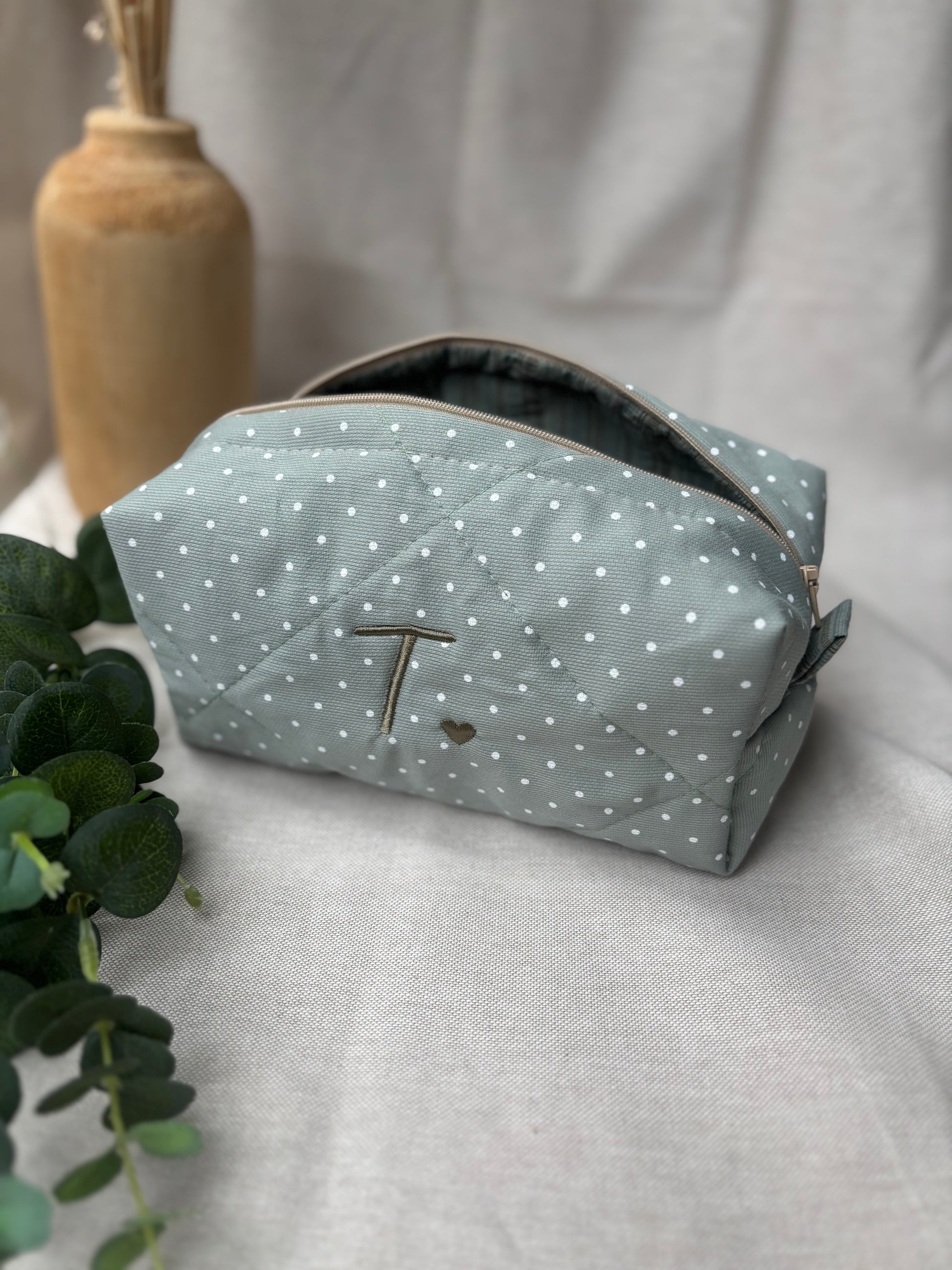Cubotto in cotone verde salvia personalizzato con lettera T , realizzabile con qualsiasi lettera o nome.