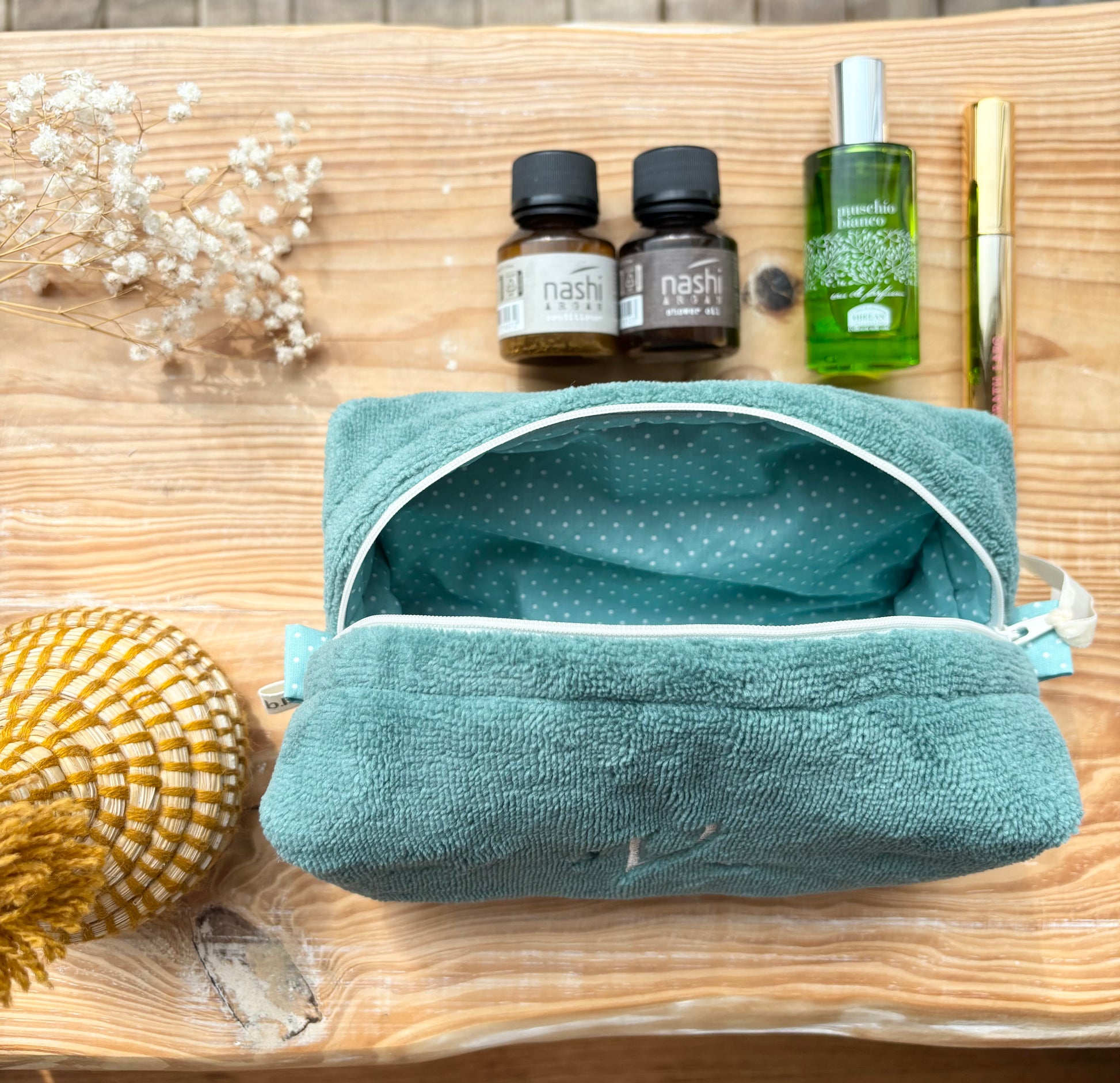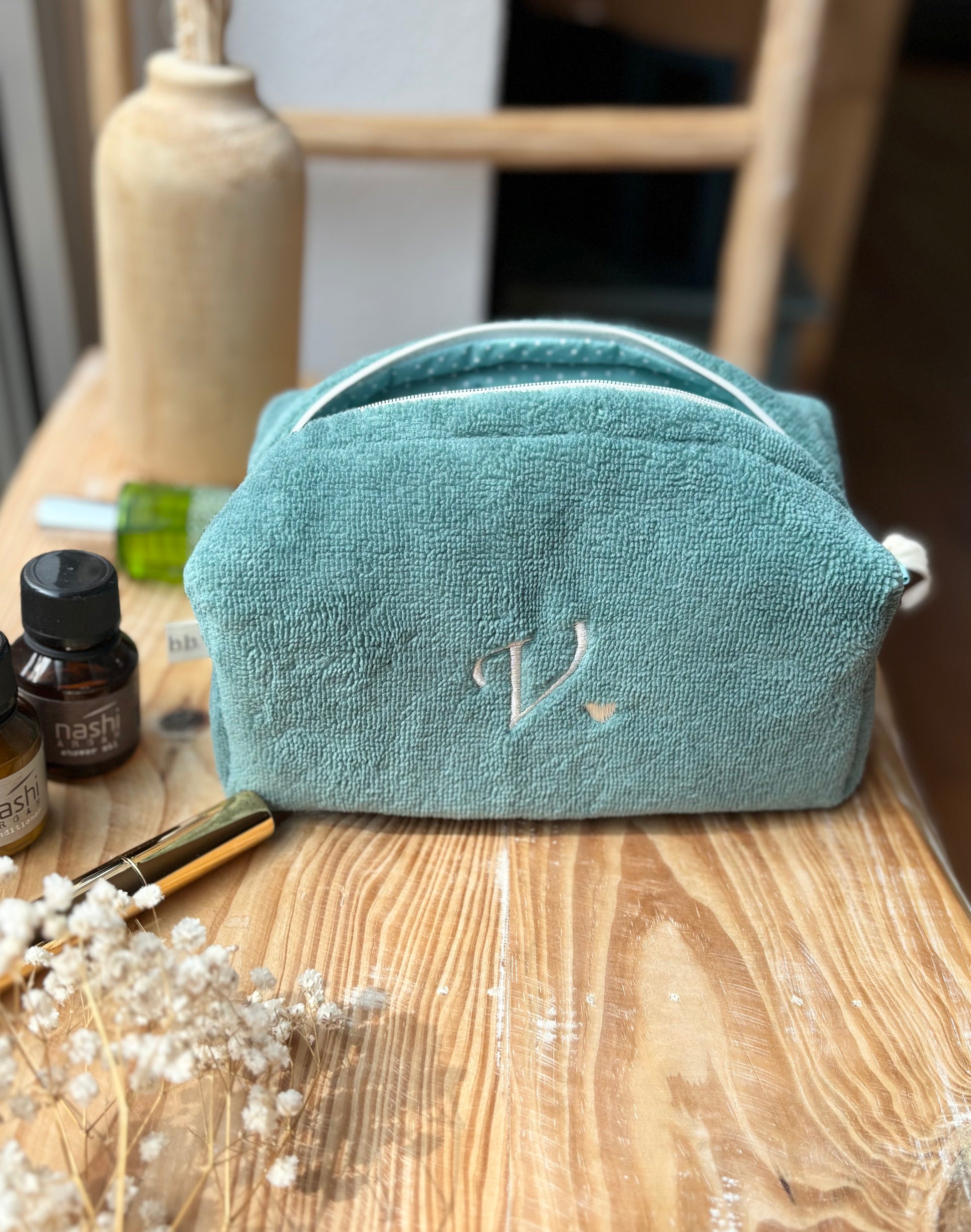 Cubotto in spugna bamboo verde personalizzato con iniziale V, realizzabile con qualsiasi iniziale o nome.