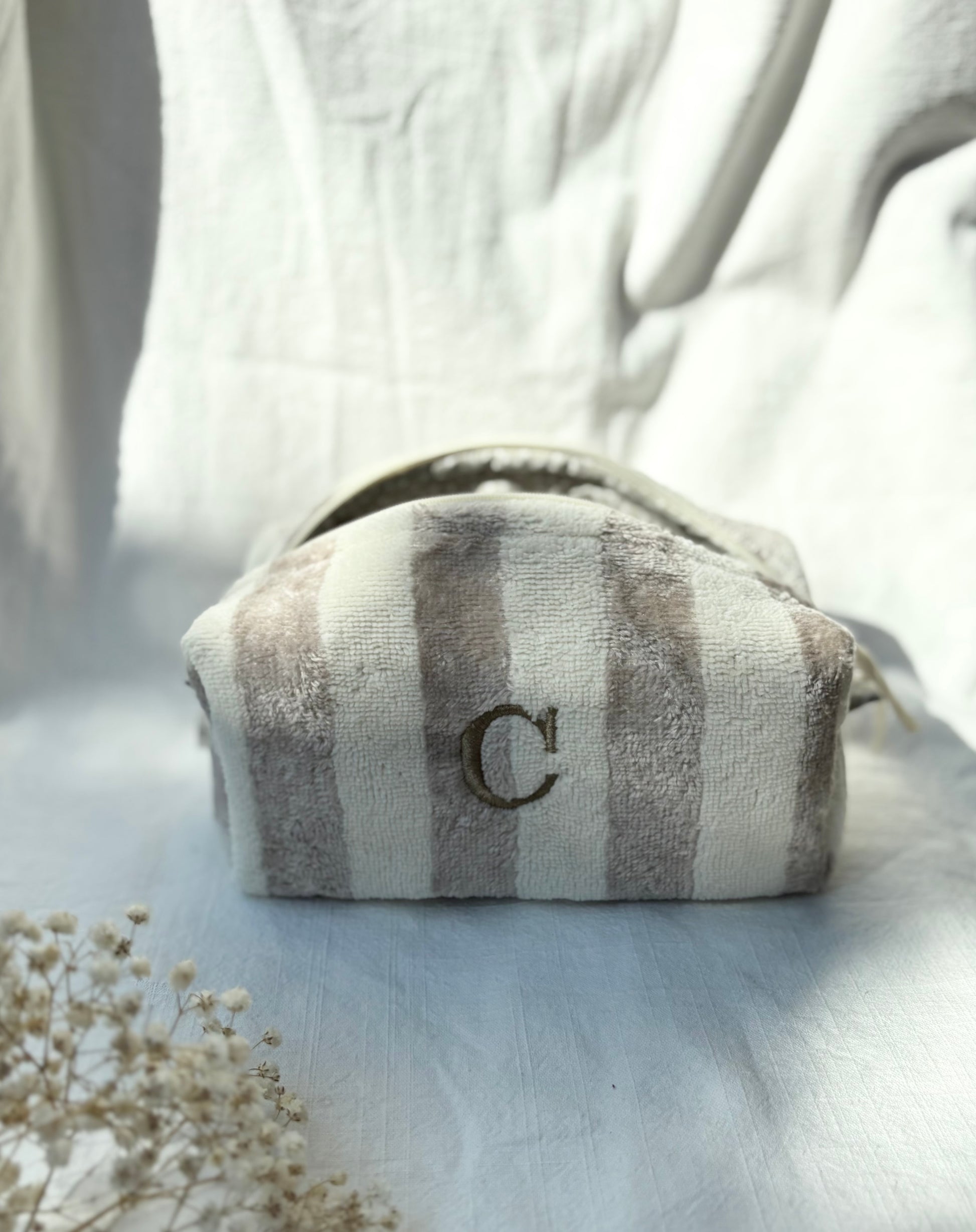 Cubotto in spugna bamboo rigato personalizzato con iniziale, realizzabile con qualsiasi iniziale o nome.