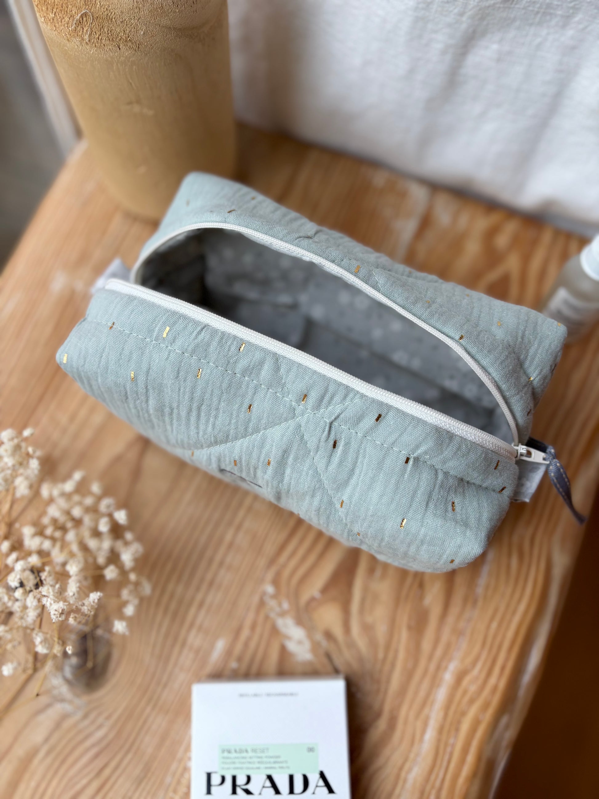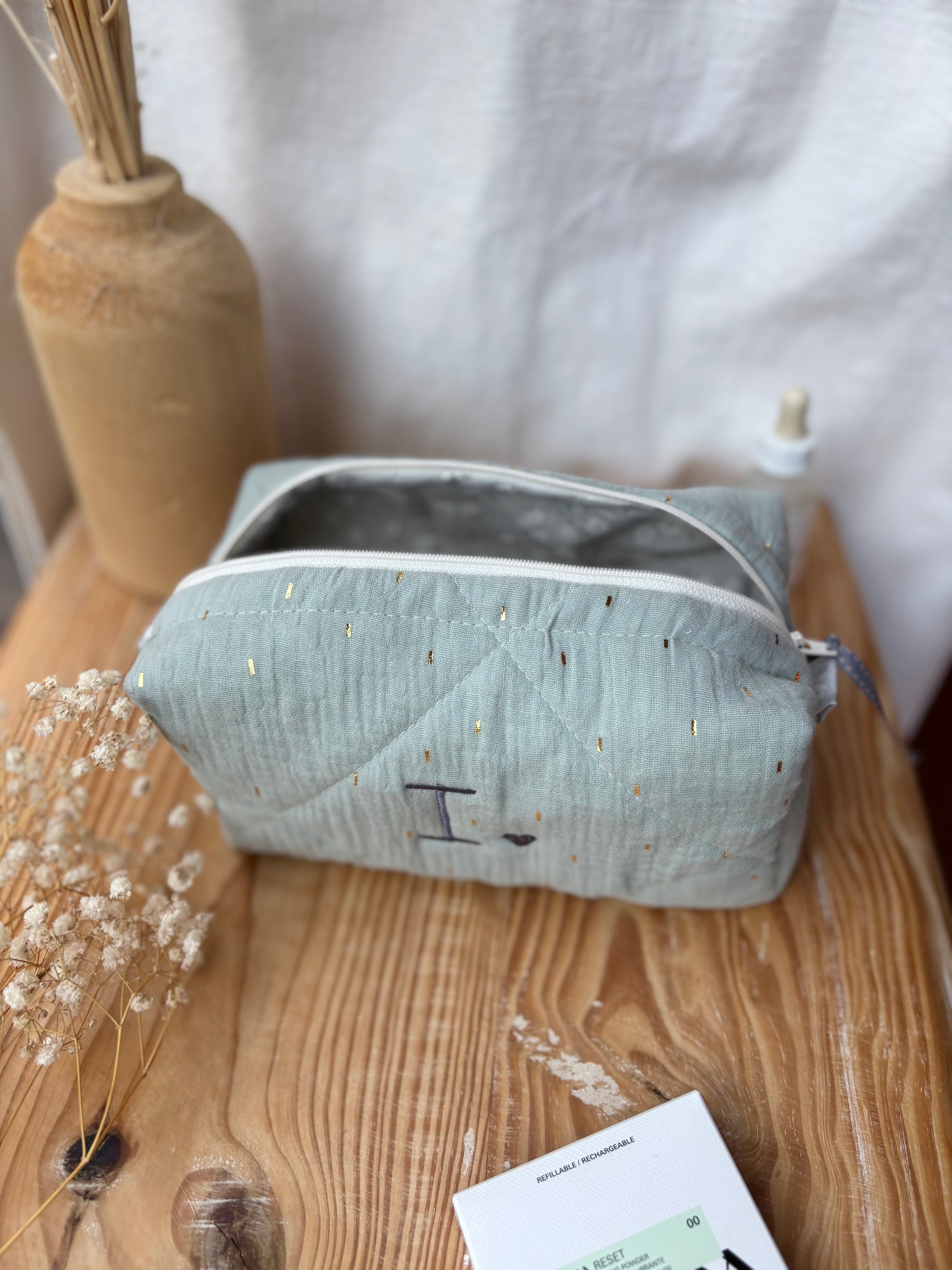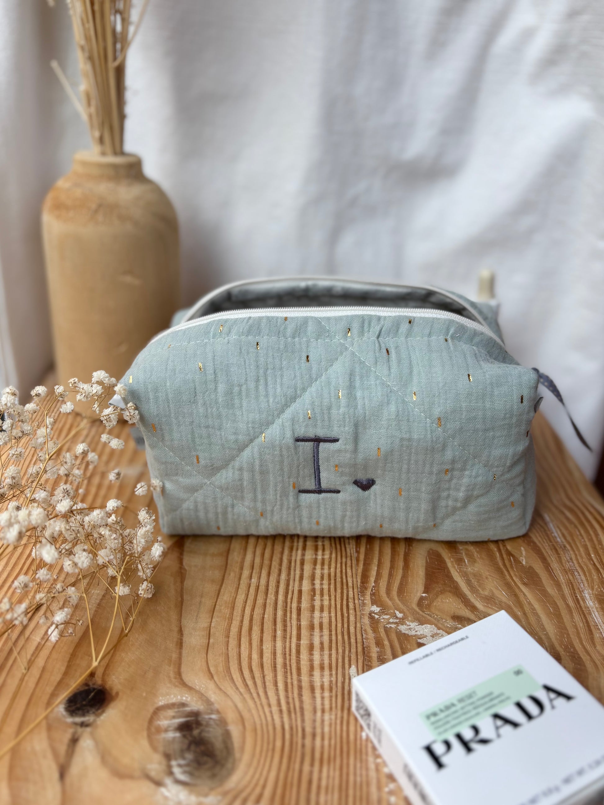 Cubotto in mussola di cotone personalizzato con iniziale I , realizzabile con qualsiasi iniziale o nome.
