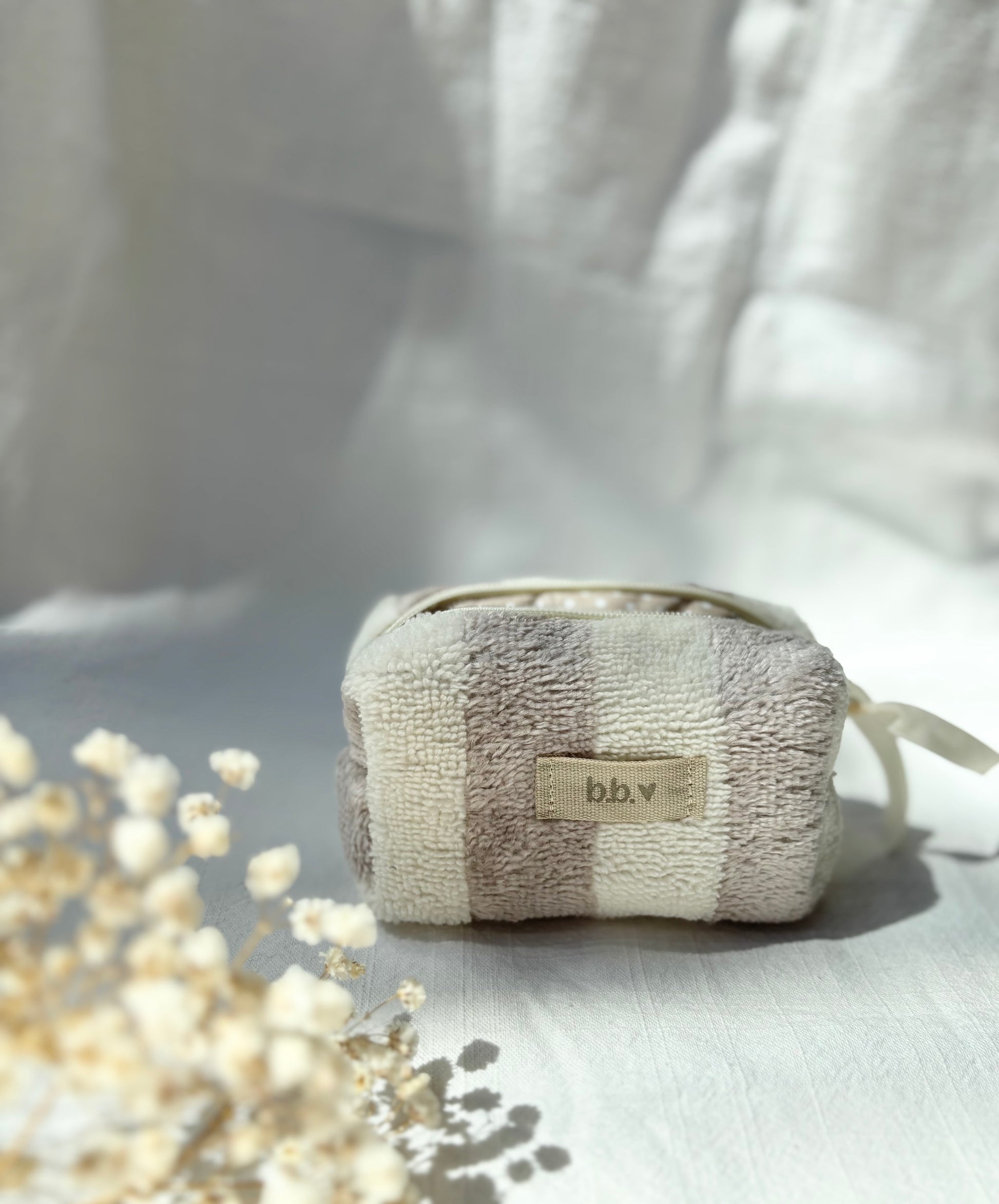 Mini cubotto in spugna bamboo rigata grigia/panna.